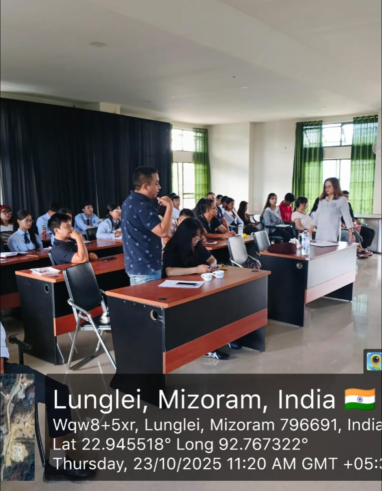 In the second session, she elaborated on visa application procedures, financial requirements, and the importance of opening a blocked account for studying in countries like Germany. The speaker also shared insights on health insurance, accommodation, and interview stages. The interactive part of the talk allowed students to ask questions about scholarships, exam validity, and loan options. Overall, the session was very informative and inspiring, motivating students of the Social Work Department to explore global educational opportunities and prepare themselves for studying abroad. The programme was concluded with a Vote of Thanks delivered by Isak Malsawmtluanga, 5th Semester BSW and Mr Dr. Rosangliana Khiangte presented Ms. K. Lalhmangaihkimi a Certificate and Dokimos as a token of appreciation.
